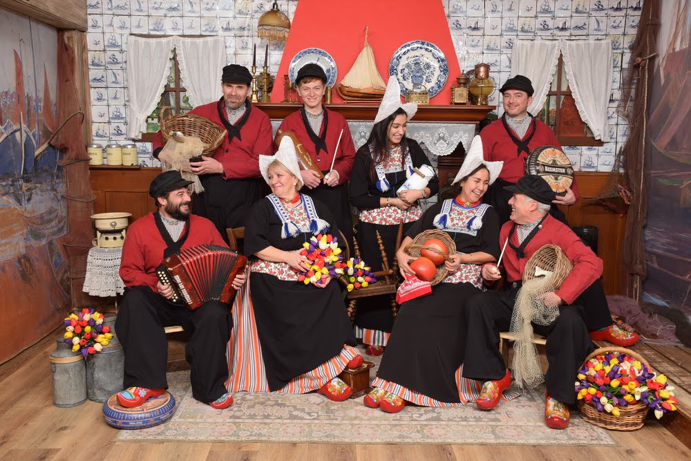 Jullie gaan samen op de foto in Volendamse klederdracht. Hoe leuk is dat? Bij aankomst in de studio worden jullie direct omgekleed. De heren krijgen een mannenkostuum en de dames een vrouwenkostuum. Er zijn meerdere kleedsters aanwezig om jullie hierbij te begeleiden. Want jullie moeten er natuurlijk wel goed uitzien! Het omkleden zorgt voor veel vrolijke taferelen. Niet zo gek toch? Hoe vaak zie je een familielid, vriend, vriendin of collega in een Volendams kostuum? Maar dat maakt het natuurlijk ook leuk! Na het omkleden wordt er voor jullie groep een leuke opstelling bedacht. Zo komen jullie er allemaal duidelijk op te staan. Om het nog leuker te maken krijgen jullie typische Hollandse voorwerpen aangereikt, zoals een visnet, vis, vismand, kaas, of koffiemolen. Allemaal lachen en het perfecte plaatje is daar. Natuurlijk krijgt iedereen ook een foto mee naar huis als uniek aandenken aan dit dagje of weekendje Volendam.
